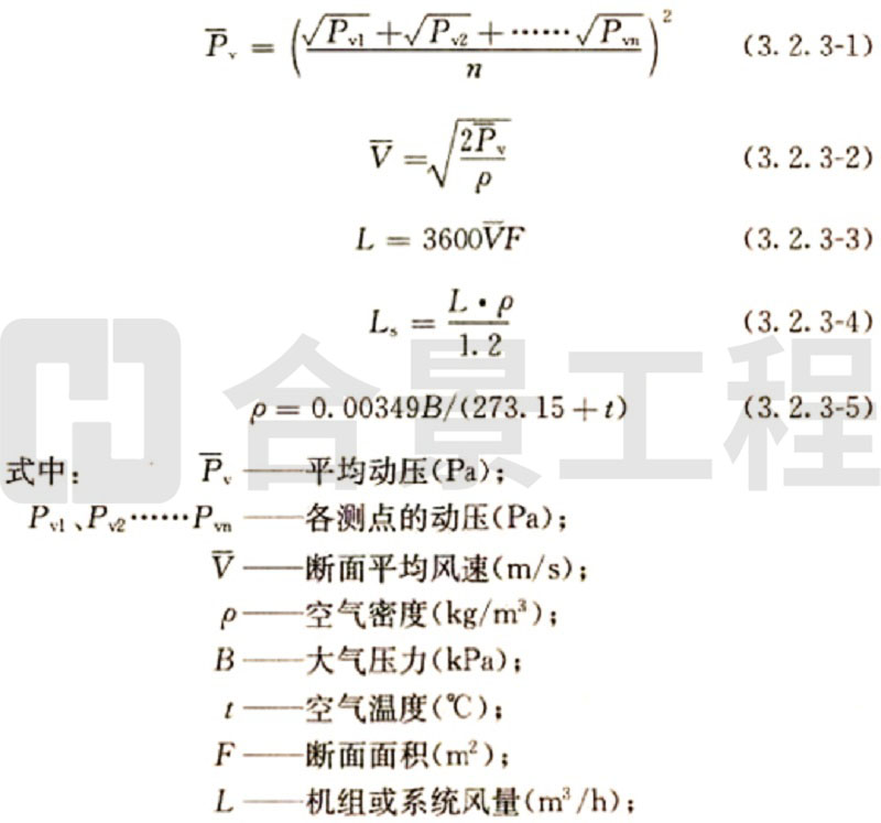 (2)當(dāng)采用熱電風(fēng)速計(jì)或數(shù)字式風(fēng)遺計(jì)測(cè)量風(fēng)量時(shí),斷面平均風(fēng)速為各測(cè)點(diǎn)風(fēng)速測(cè)量值的平均值,實(shí)測(cè)風(fēng)量和標(biāo)準(zhǔn)風(fēng)量的計(jì)算方法與畢托管和微壓計(jì)測(cè)量計(jì)算方法相同。