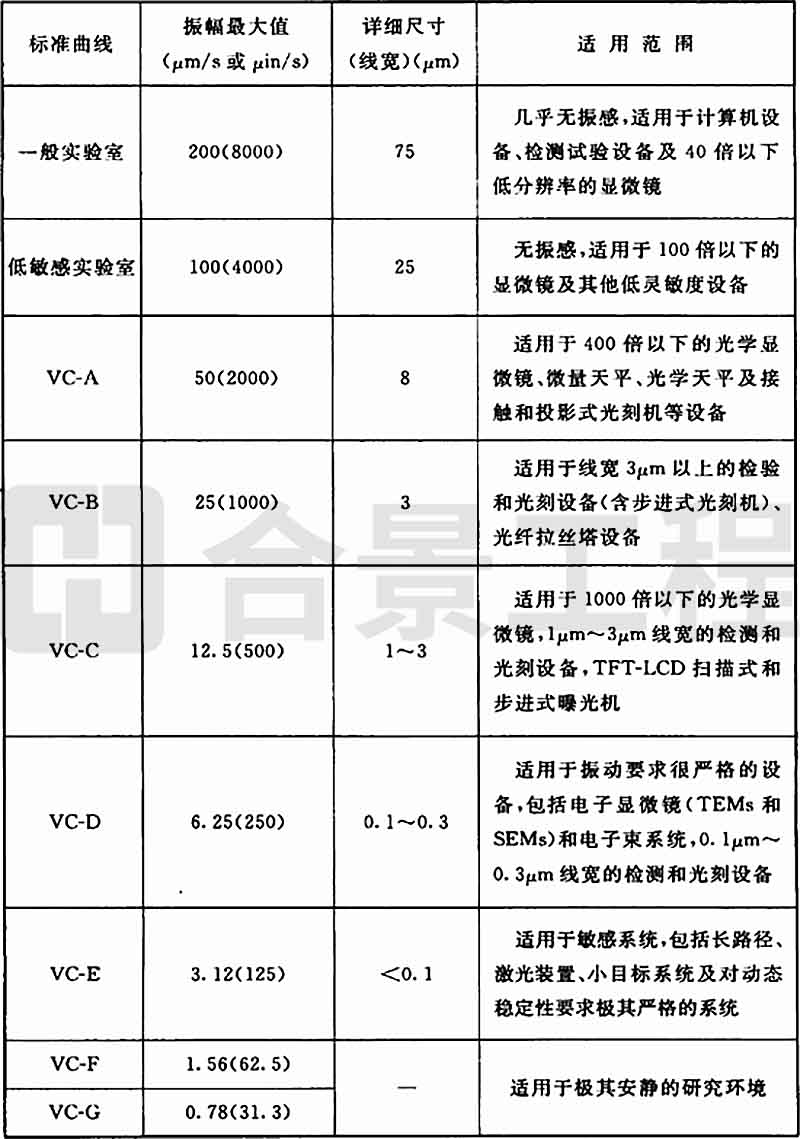 A.0.2 精密設(shè)備、儀器容許振動(dòng)標(biāo)準(zhǔn)曲線(xiàn)的應(yīng)用應(yīng)符合表A.0.2的要求。